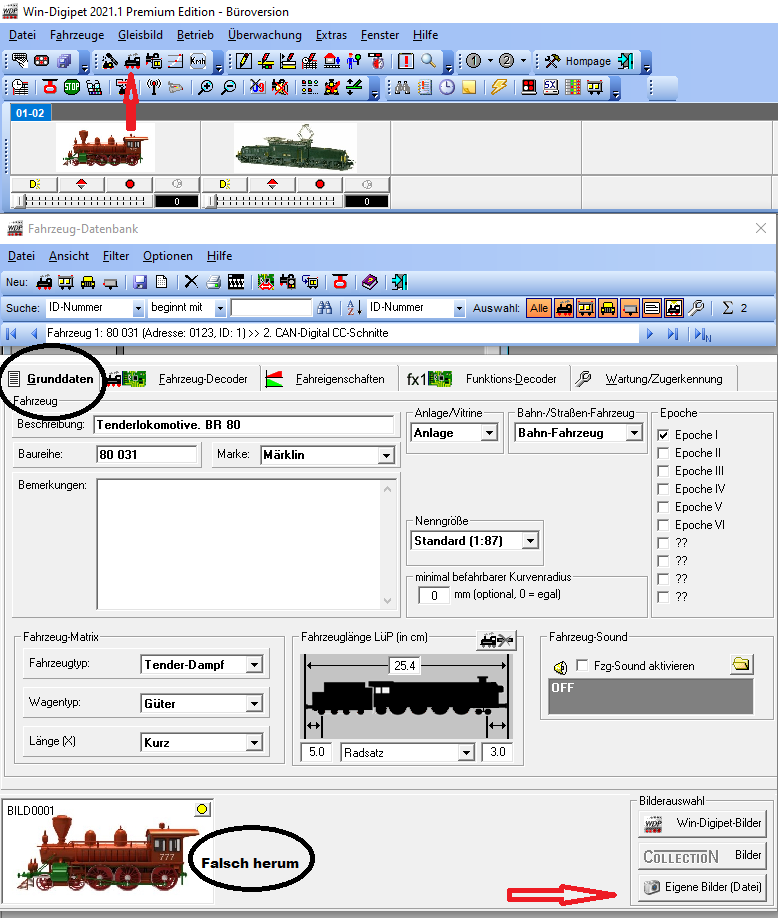Grundstellung im Startfenster: Büroversion / Lok Datenbank .